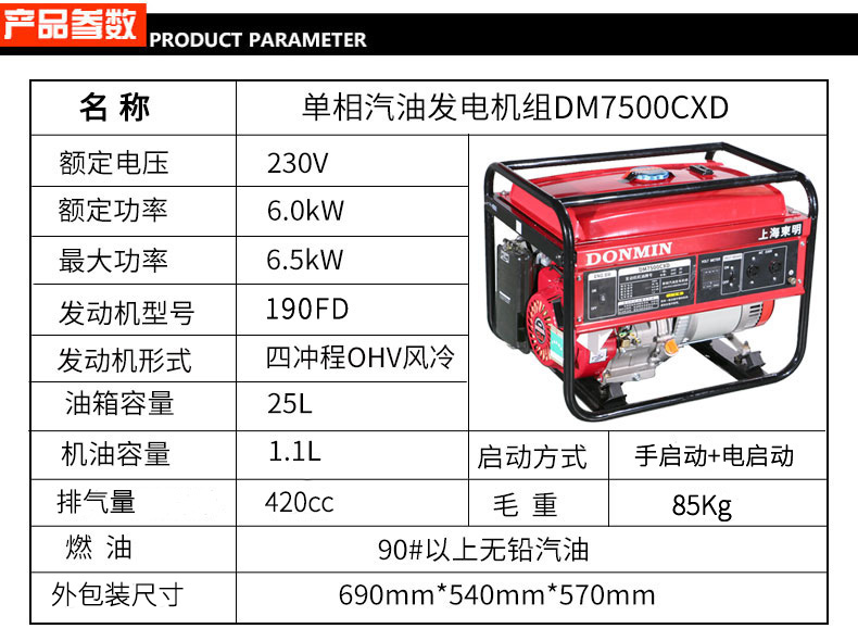 * 表示必填采購:單相6kW小型汽油發(fā)電機(jī)組【可配備移動輪】DM7500CXD