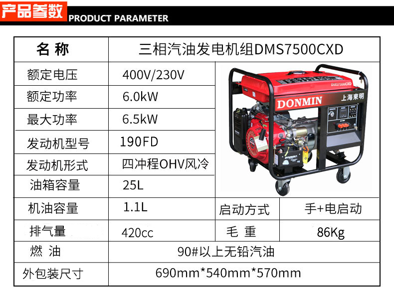 * 表示必填采購:三相6kW汽油發(fā)電機 DMS7500CXD電動